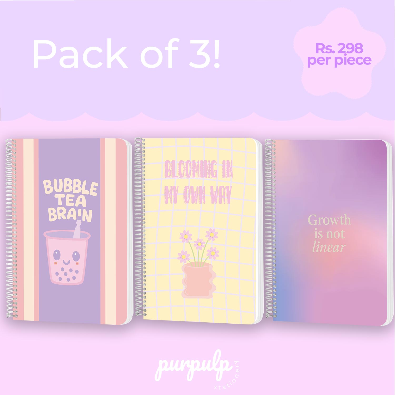 A4 spiral notebooks Bundle - "Bubble Tea Brain", "Blooming In My Own way" & "Growth is not Linear"